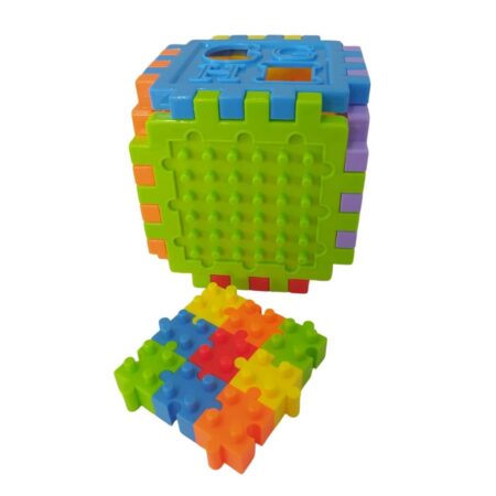 Cubo desmontável com 6 lados: 2 contendo quebra cabeças e 4 encaixe para letras do alfabeto.Brinquedo educativo que desenvolve: