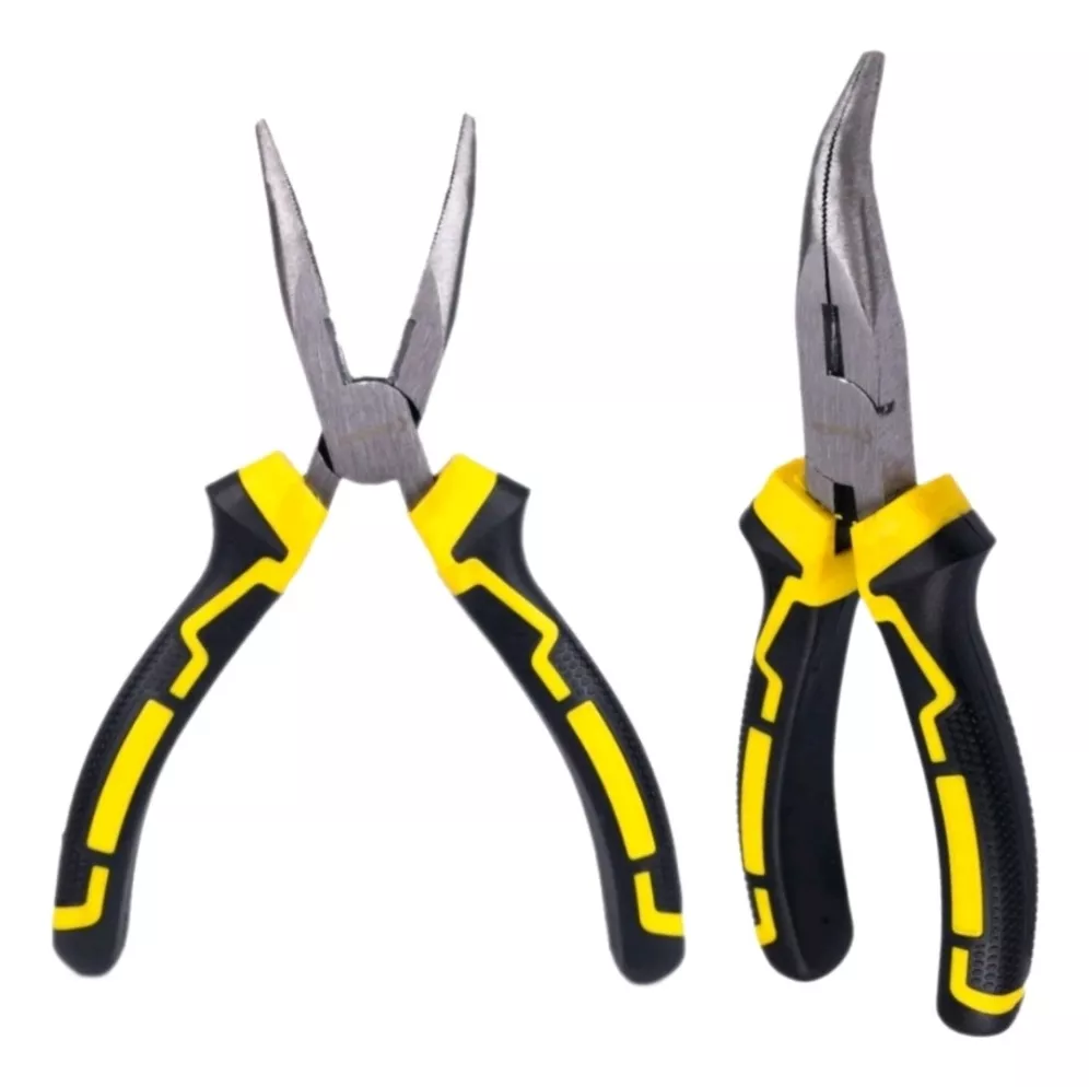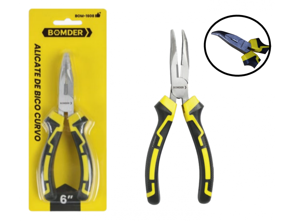 o alicate de bico meia cana curvo é ideal para o seu trabalho, casa, oficina, Dia a Dia. Feito em aço resitente e cabo emborrachado trazendo segurança e diminui o risco de escorregar da sua mão.