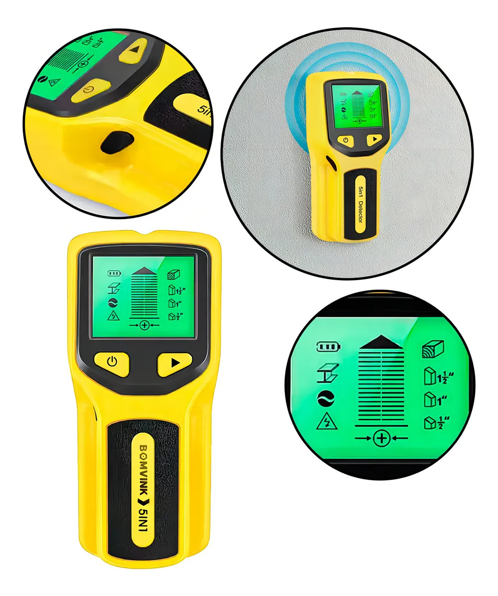 O Detector de Metais 5 em 1 é uma ferramenta multifuncional indispensável para profissionais da construção civil, eletricistas, marceneiros e para uso doméstico. Com corpo compacto e fácil de transportar, ele oferece uma detecção precisa e profunda em diversos materiais como madeira, metais e fios elétricos, proporcionando segurança e eficiência na execução do trabalho.
