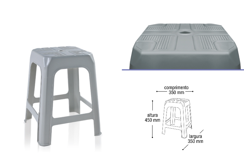 Banqueta Bar Plástico Resistente Empilhável cinza da marca Arqplast, ideal para quem busca praticidade e estilo em ambientes como cozinhas, áreas externas e jardins. Com um design clássico, cada banqueta possui um assento texturizado em plástico, garantindo conforto e durabilidade. As medidas de 35 cm de diâmetro e 45 cm de altura tornam-nas perfeitas para diversos usos.