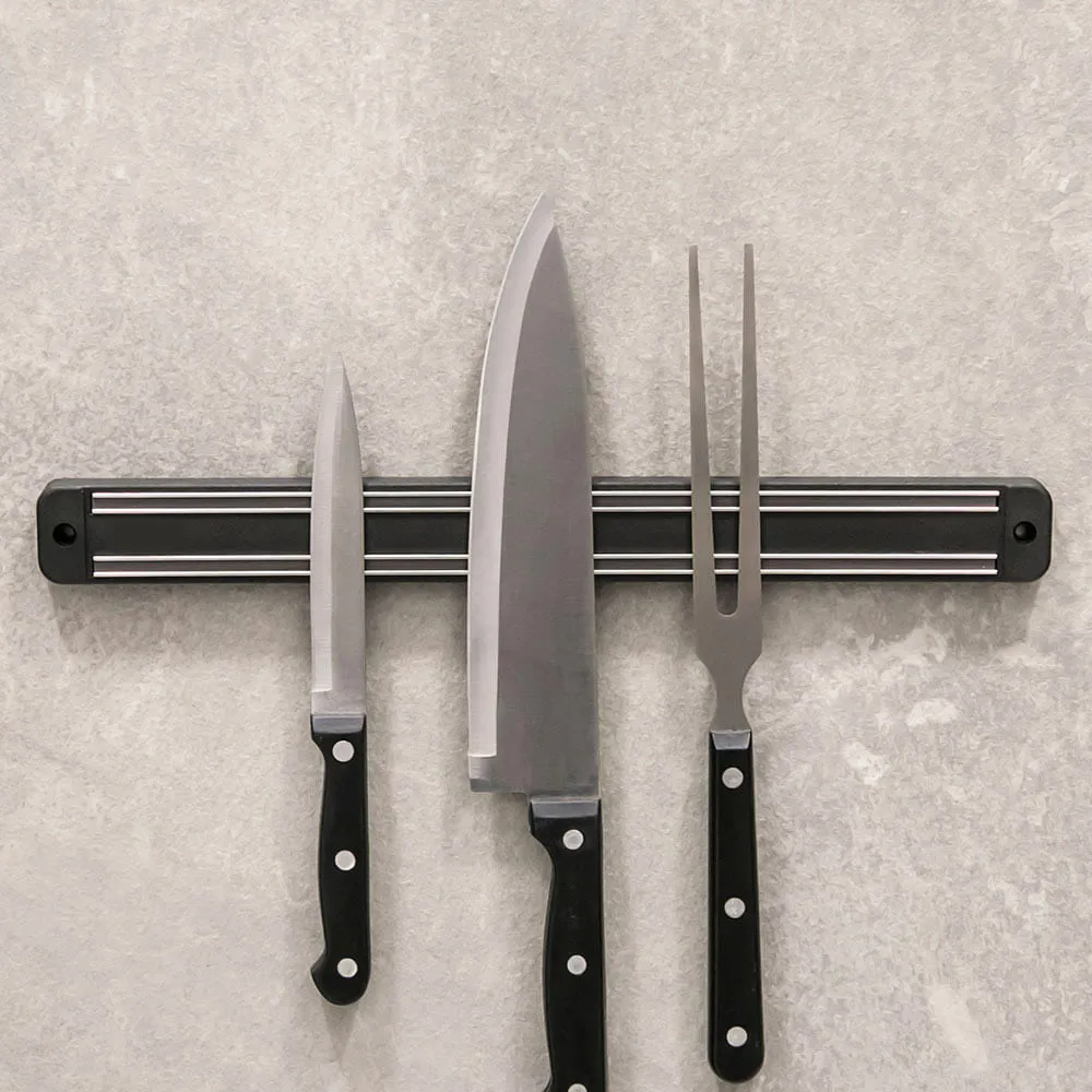 A Barra Magnética é composta por dois imãs paralelos que seguram os objetos metálicos fortemente. Isso permite a exposição dos objetos presos em paredes, fazendo com que suas facas ou ferramentas sejam acomodadas de melhor maneira do que em caixas ou gavetas, mantendo sempre a organização de seu espaço.