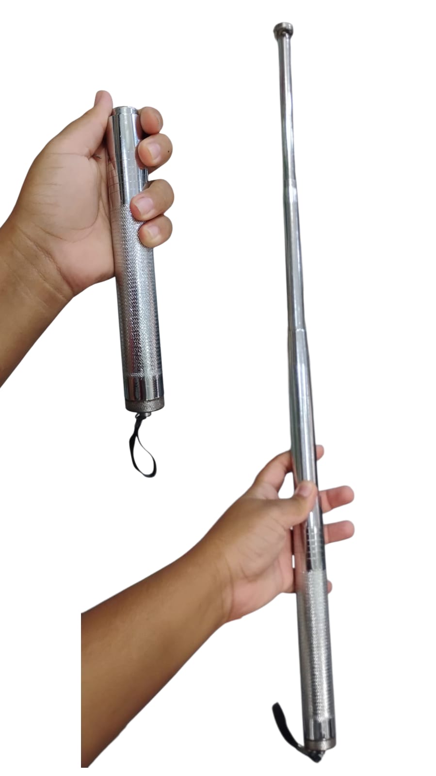 bastao em aco retratil 20cm cromado muito forte 3 estagios yf-055