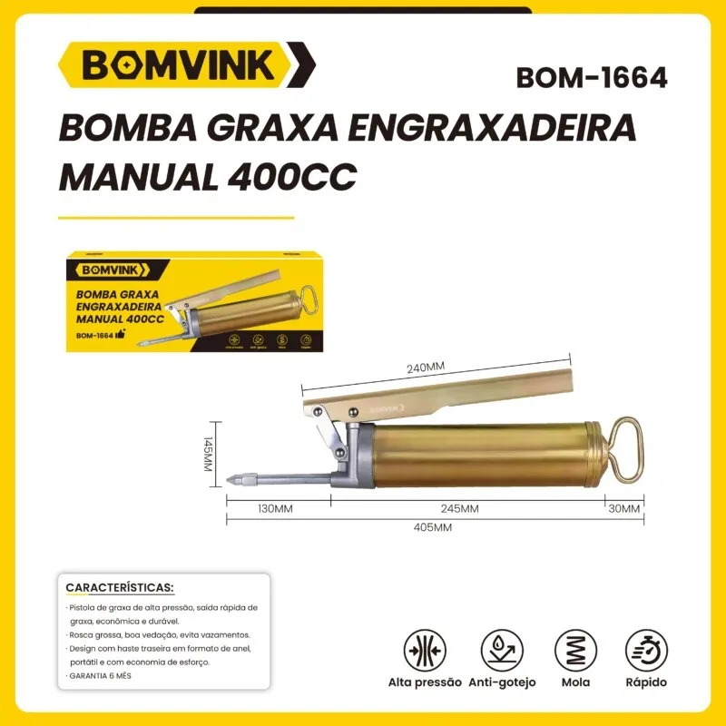 bomba de graxa engraxadeira manual capacidade 400 gramas bom-664