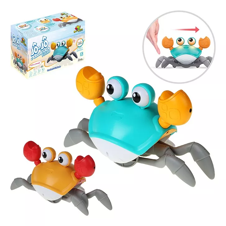 brinquedo caranguejo fujão toca musica sensor indução robô – azul