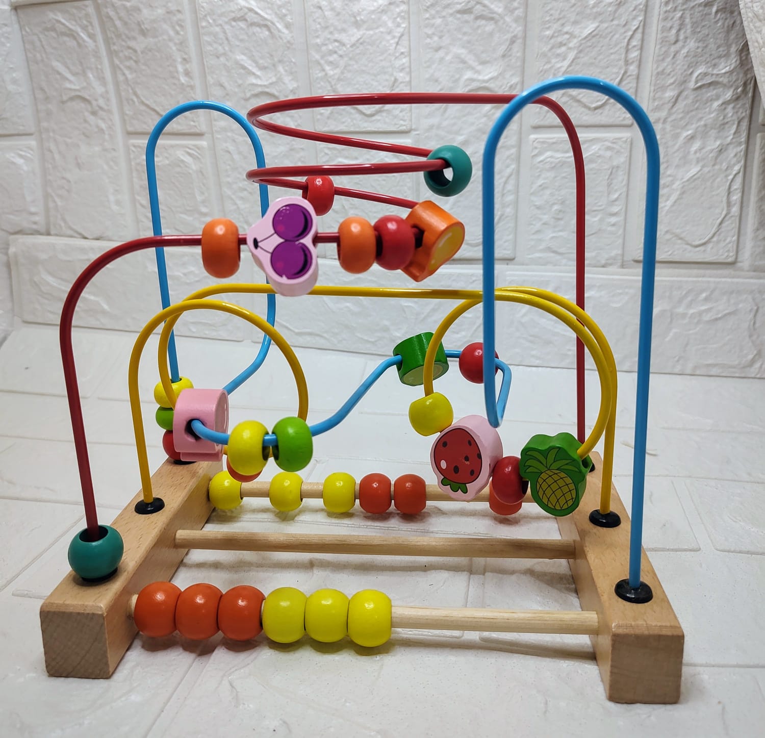 Esse brinquedo tem por objetivos desenvolver a habilidade motora da criança, bem como o pensamento lógico. Sobre uma base de madeira há três caminhos aramados distintos, que devem ser percorridos pelas diferentes peças. Através das mãos o bebê pode passar as diferentes peças de um lado a outro de cada caminho.