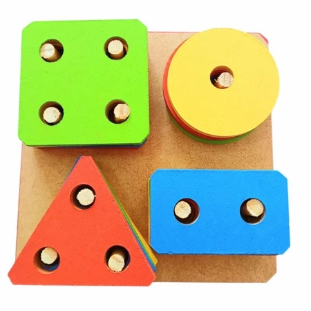 Feito em madeira resistente e com acabamento seguro e colorido, o jogo inclui uma prancha base com espaços específicos para encaixe de diferentes formas, cores ou figuras. A criança é desafiada a selecionar e posicionar corretamente cada peça, desenvolvendo atenção, concentração e noções de classificação e associação.