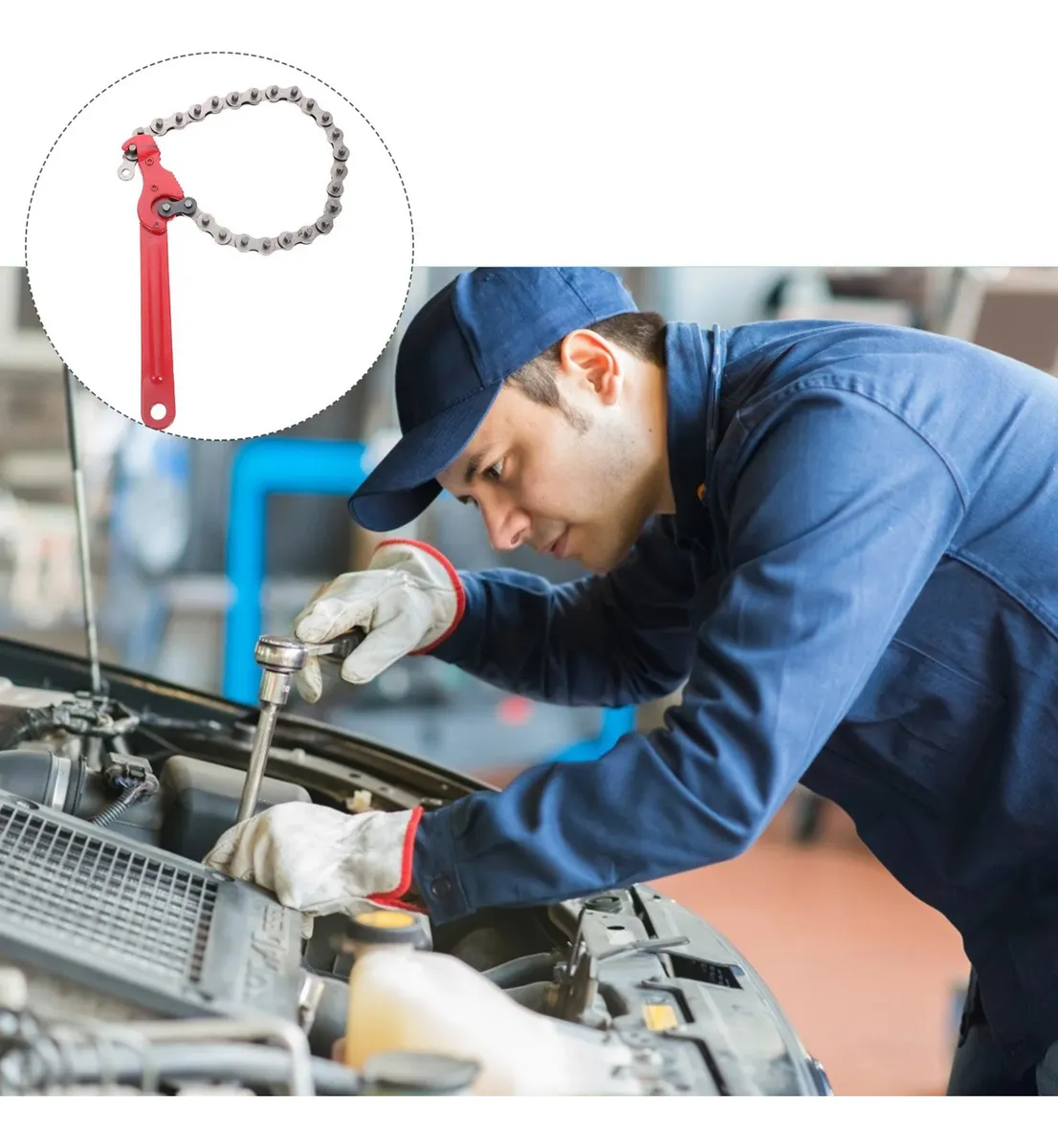 A Chave Corrente de 8 Polegadas é a ferramenta ideal para quem busca firmeza e eficiência na remoção de filtros de óleo, tubos, conexões e peças cilíndricas. Sua corrente ajustável se adapta a diferentes diâmetros, garantindo excelente desempenho mesmo em áreas de difícil acesso.