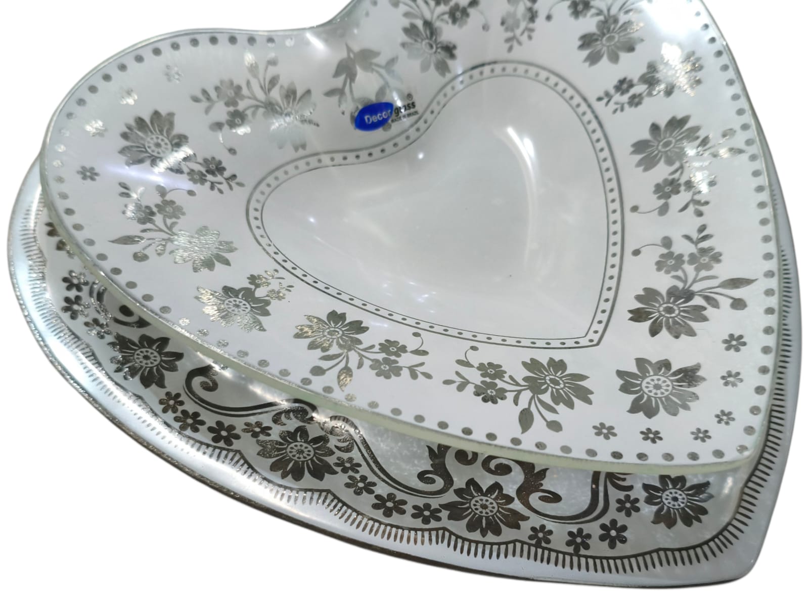 2 Pratos de Vidro Coração Fundo Renda Exclusivos (Ref. 17767):
