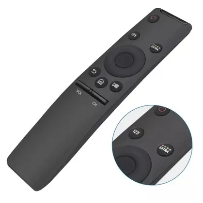 Este é um controle remoto universal ou de reposição projetado para funcionar com diversos modelos de Smart TVs Samsung 4K.