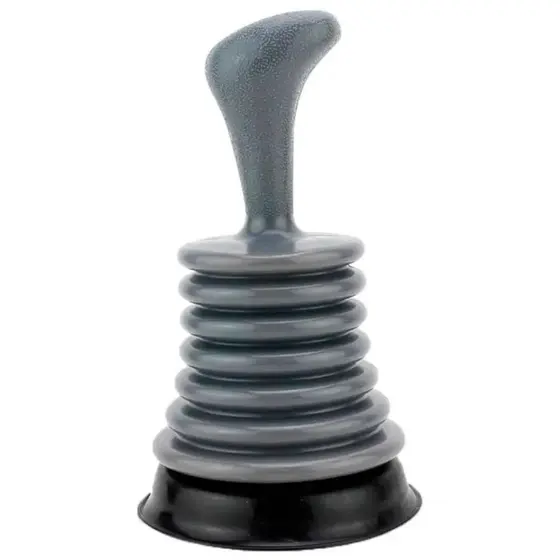 Fabricado em plástico resistente na cor cinza, o formato sanfonado proporciona maior pressão ao bombeamento, facilitando a liberação de obstruções sem esforço.