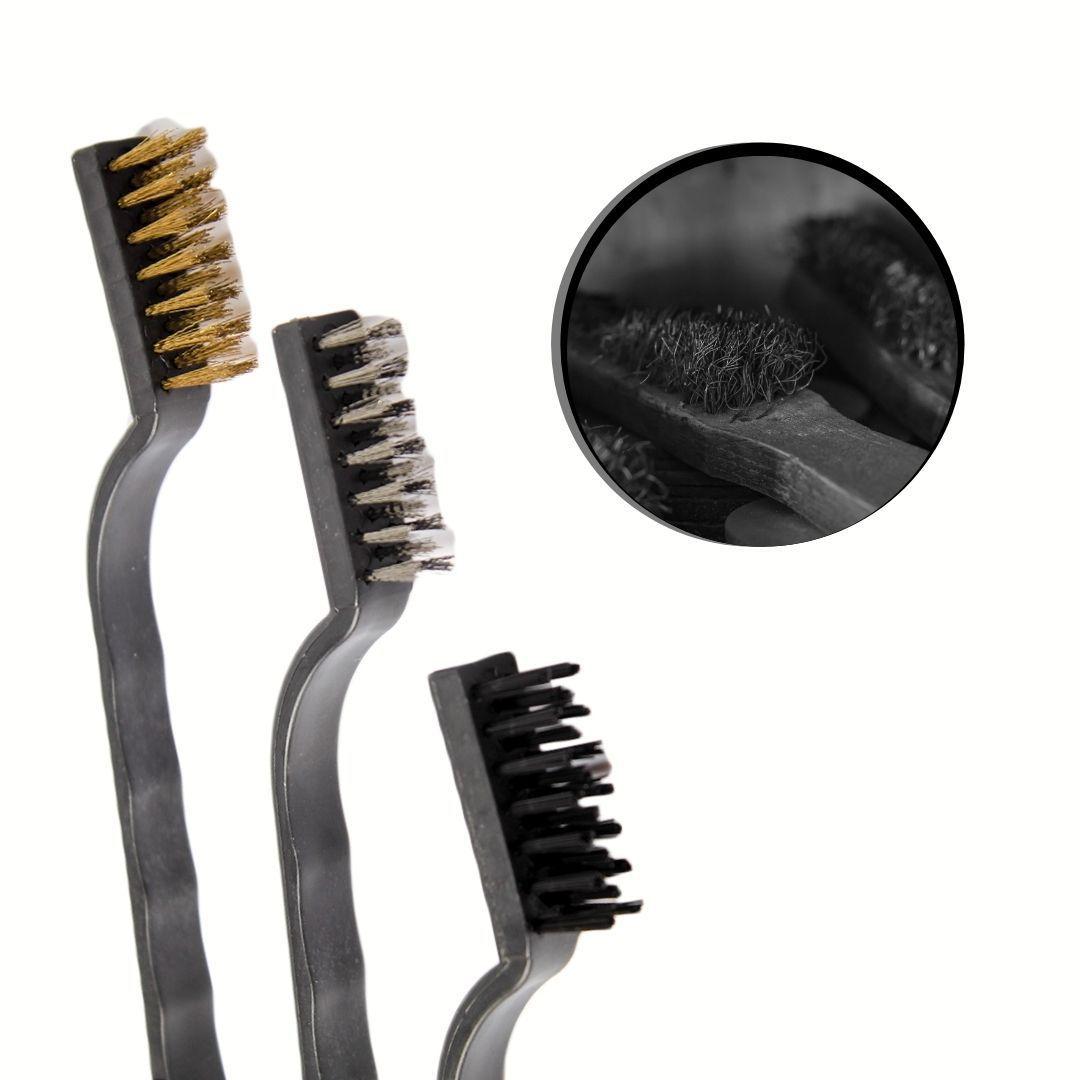 Escova de aço fazem o trabalho completo por você, com pegador ergonômico que garante mais conforto, são ideais para limpeza de pequenas partes, possui cerdas firmes para retirada de ferrugens e tintas, cada escova possui um tipo de cerda diferente: latão, aço e nylonc