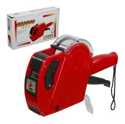 É uma máquina simples e prática, usada para colocar preços e códigos em produtos de forma rápida, ideal para lojas e comércios.