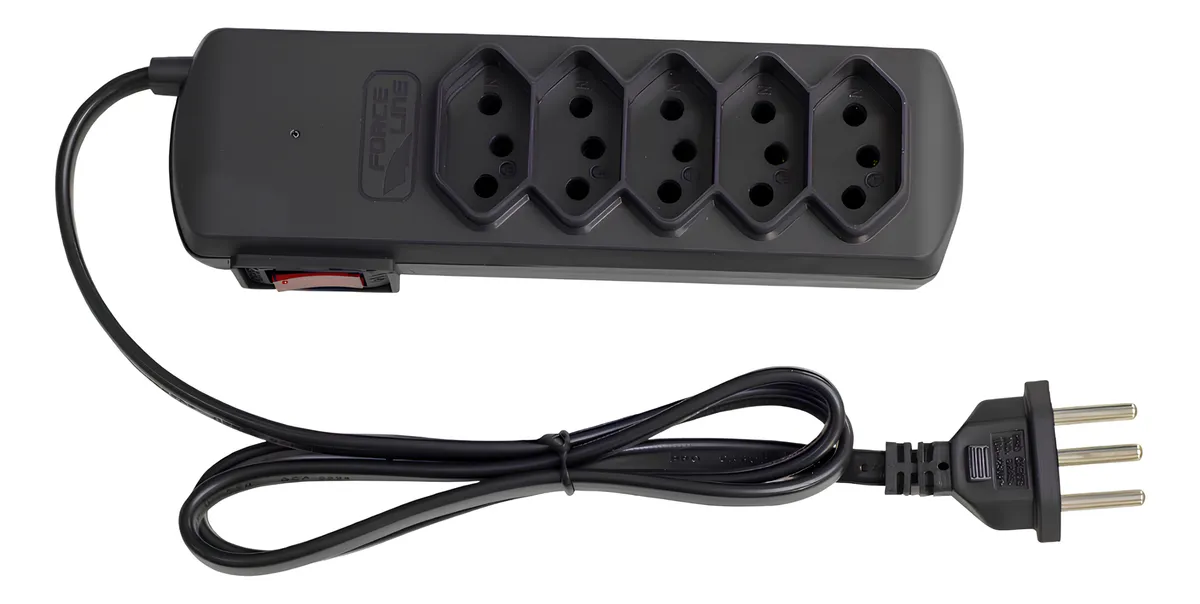 | **Tripolar** | Indica que o plugue principal e as 5 tomadas internas seguem o **Padrão Brasileiro de Plugues e Tomadas (NBR 14136)**, ou seja, são de **três pinos** (Fase/Neutro, e o pino central de **ATERRAMENTO**). | O pino terra é crucial para direcionar surtos de energia para o solo, garantindo a proteção dos aparelhos. |
