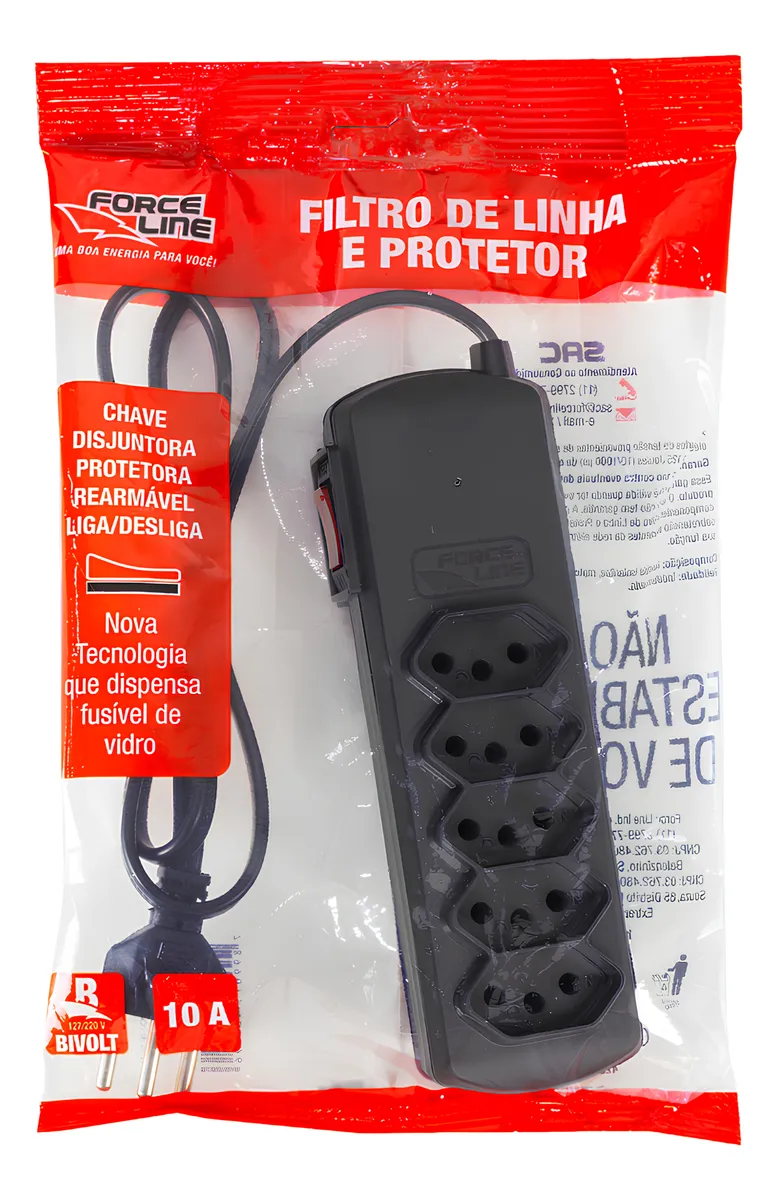 filtro de linha 0,8m 10a tripolar preto 5 tomadas forceline cod:0060500124