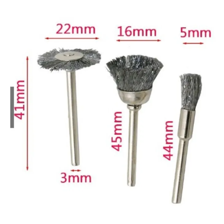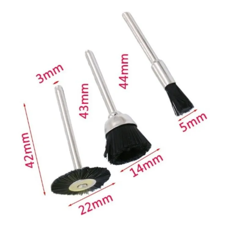 * **Tipos:** O kit pode incluir escovas no formato de copo, pincel (radial) ou roda.