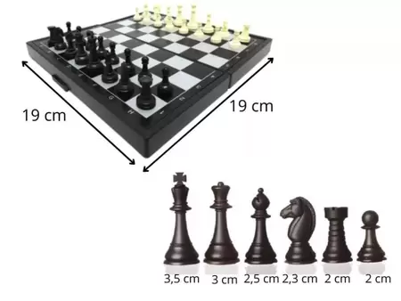 Feito com material de excelente qualidade, peça em plástico com imã em sua base e quando fechado o tabuleiro se transforma em um prático estojo para guardar todas as peças.