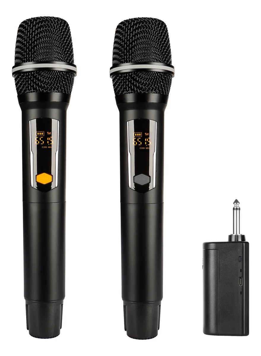 ## 🎤 Kit 2 Microfones Sem Fio VHF Dinâmico Recarregável (MC826)
