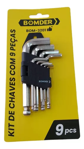 Jogo De Chaves Allen Hexagonal Curta 1,5 A 10mm Ponta Abaulada CR-V Profissional 9 Peças