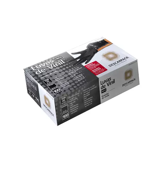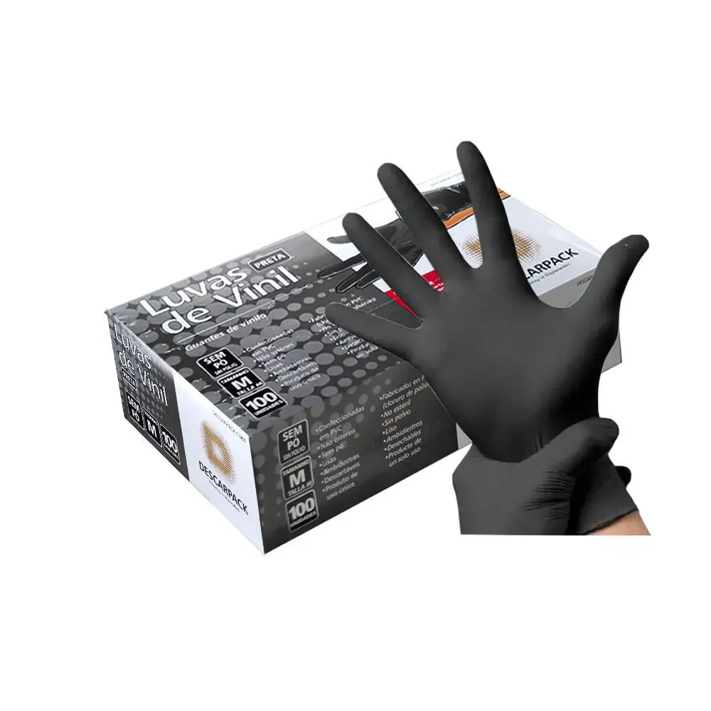 Luva De Vinil Descartável Preta Sem Pó Descarpack 100 un
