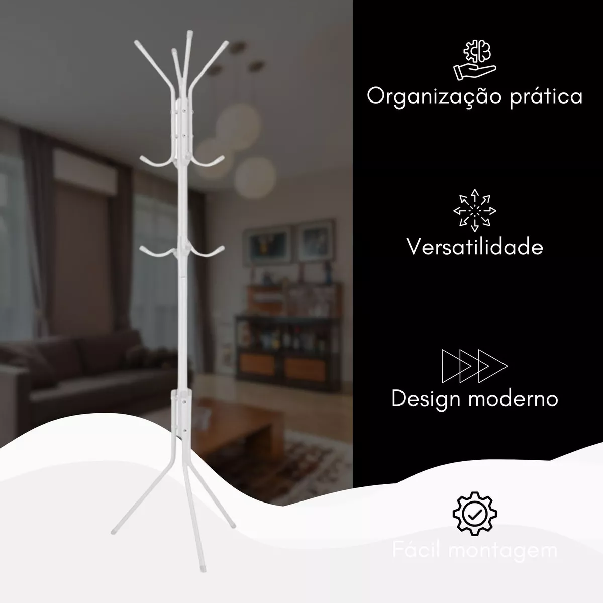 mancebo cabideiro chão pé bolsa casaco chapéu 12 ganchos cor branco