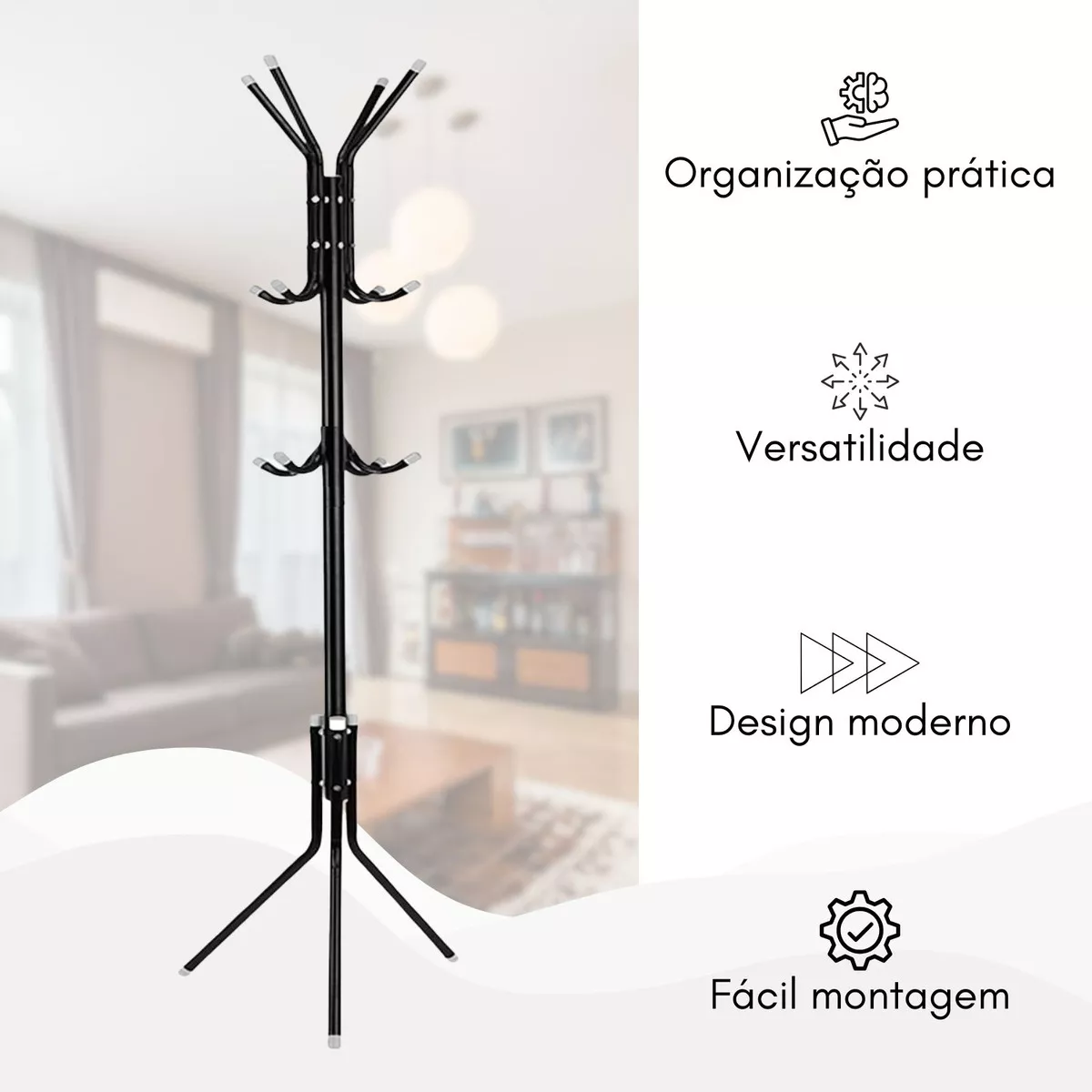 Praticidade e Resistência: Com 8 ganchos, suporte e extremidade em emborrachado, é prático, resistente, e não ocupa muito espaço. Ideal para acomodar casacos, bolsas, cachecóis, bonés, chapéus, guarda-chuvas, mochilas, e muito mais.
