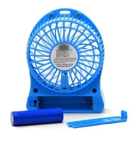 Aviso sobre o produto: Imagem ilustrativa. Modo de velocidade: 3 faixas. Potência de saída (max): 4,5 W. Tempo de Trabalho: 2 à 4 h. Especificação da Bateria: 18650li-ion. Instalação da Bateria: Removível. Tempo de Carregamento (h): 5. Tamanho: 5,1*4,1*1,5polegadas. Peso Líquido: 188 g. Carregador: entrada 100-240vac. output: 5 v/1a DC. País de Origem: China Disponível em Cores Sortidas. Não é possível a escolha de cores/texturas ou modelos, envio é feito de acordo com o estoque. Conteúdo da Embalagem 1 Mini-Ventilador. 1 Cabo USB. 1 Bateria. 1 Manual de Instrução