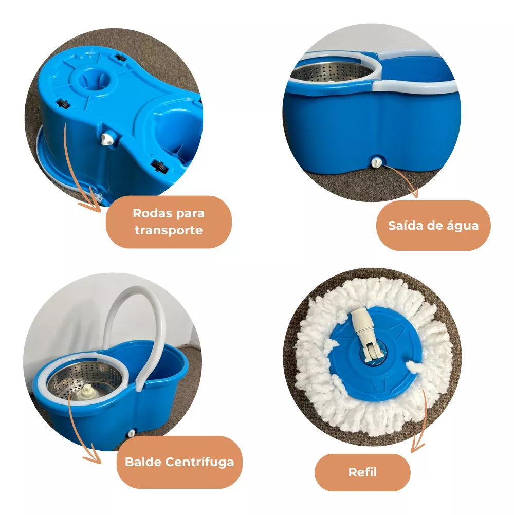 Tem grande poder de absorção, graças ao seu refil de microfibra que absorve a água e a sujeira mais rápido e mais facilidade. Depois, basta secar rapidamente o refil no balde lava e seca.