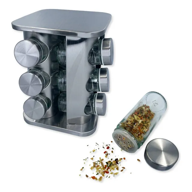 porta tempero e condimentos giratório 360 inox 12 potes oasis market oih-2661