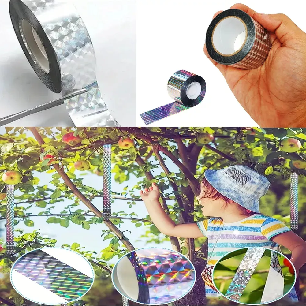 É uma fita holográfica refletiva usada para afastar pássaros de áreas específicas, como hortas e sacadas. É uma solução ecológica, pois não machuca as aves, apenas as espanta.
