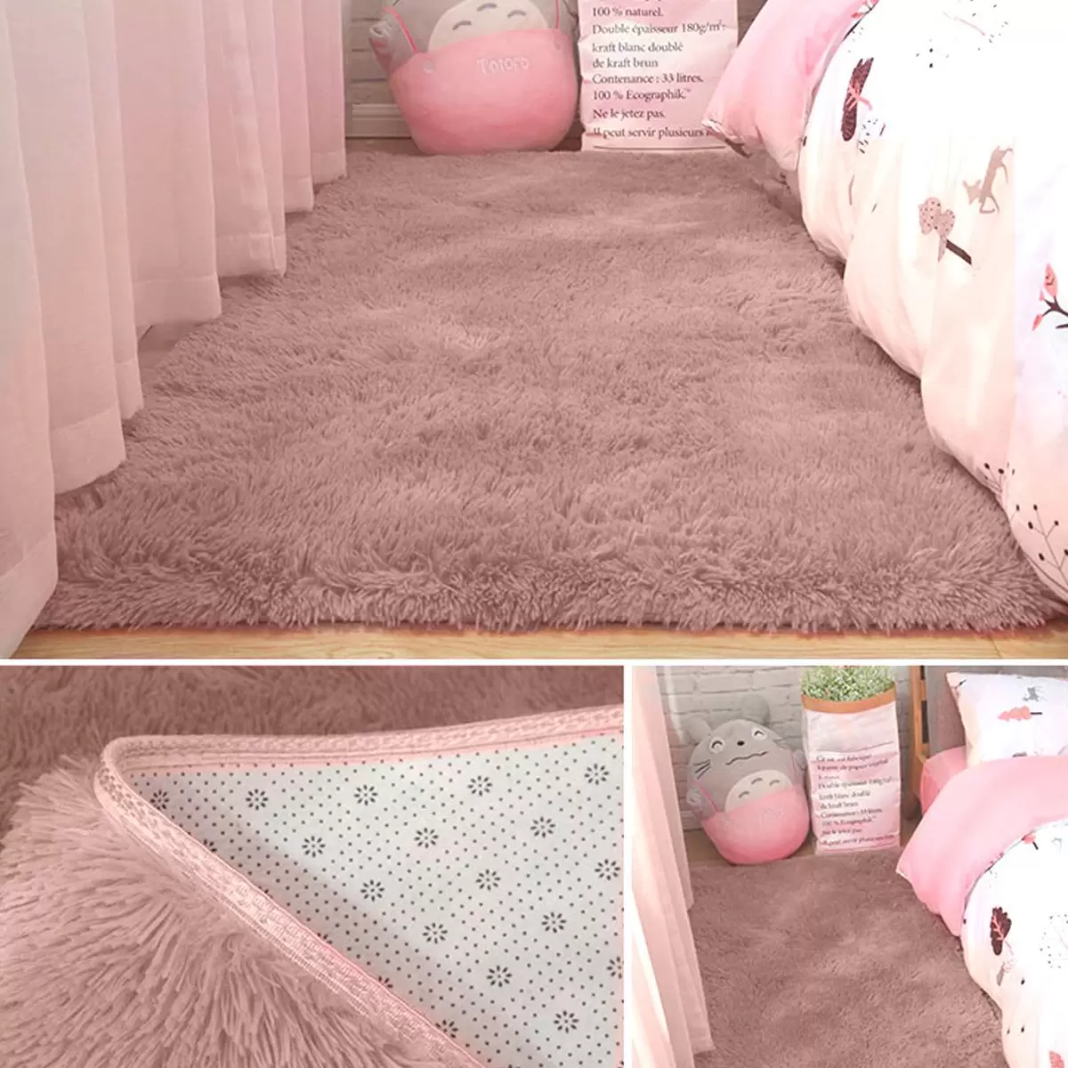 Ele é perfeito para esses ambientes, pois é felpudo, traz mais aconchego e suaviza a queda de objetos, sua cor transmite modernidade e apresenta um tamanho e altura de pêlo, próximo a 4 cm, exato para o local.